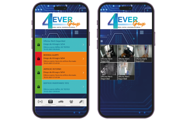 Recibirás notificaciones de eventos, tales como intrusión, apertura y cierre realizados por personal autorizado, para todas las cuentas de alarmas contratadas en tus oficinas y sucursales. Además, tendrás la capacidad de visualizar las cámaras de seguridad tanto en tu oficina principal como en todas tus sucursales, permitiéndote agruparlas según tus preferencias.